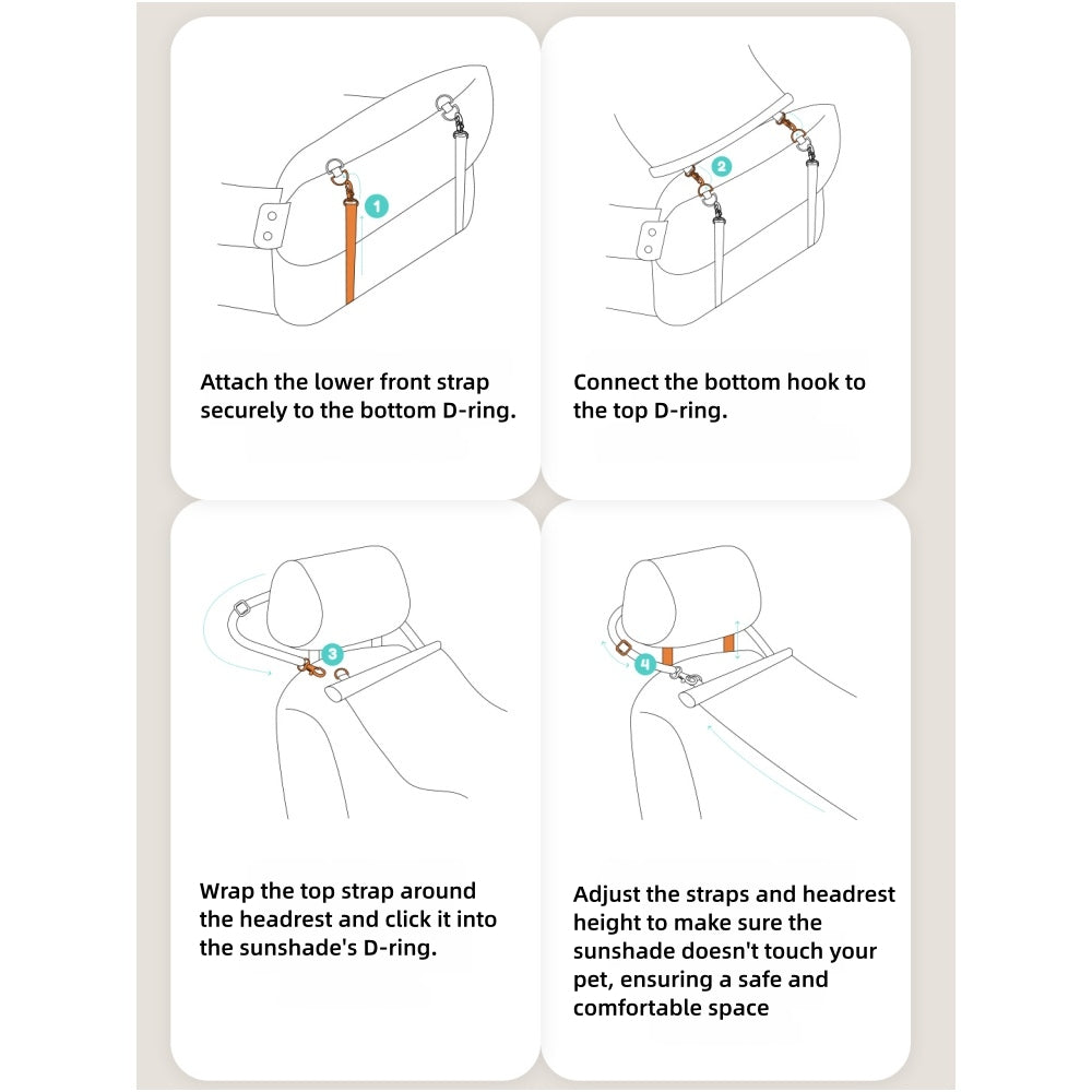 Crafted with premium, breathable fabrics and extra-soft padding, this car safety pet seat provides a cozy nest for your furry friend. The plush interior supports comfortable resting positions, while the raised edges create a sense of security, helping your pet relax fully during travel.