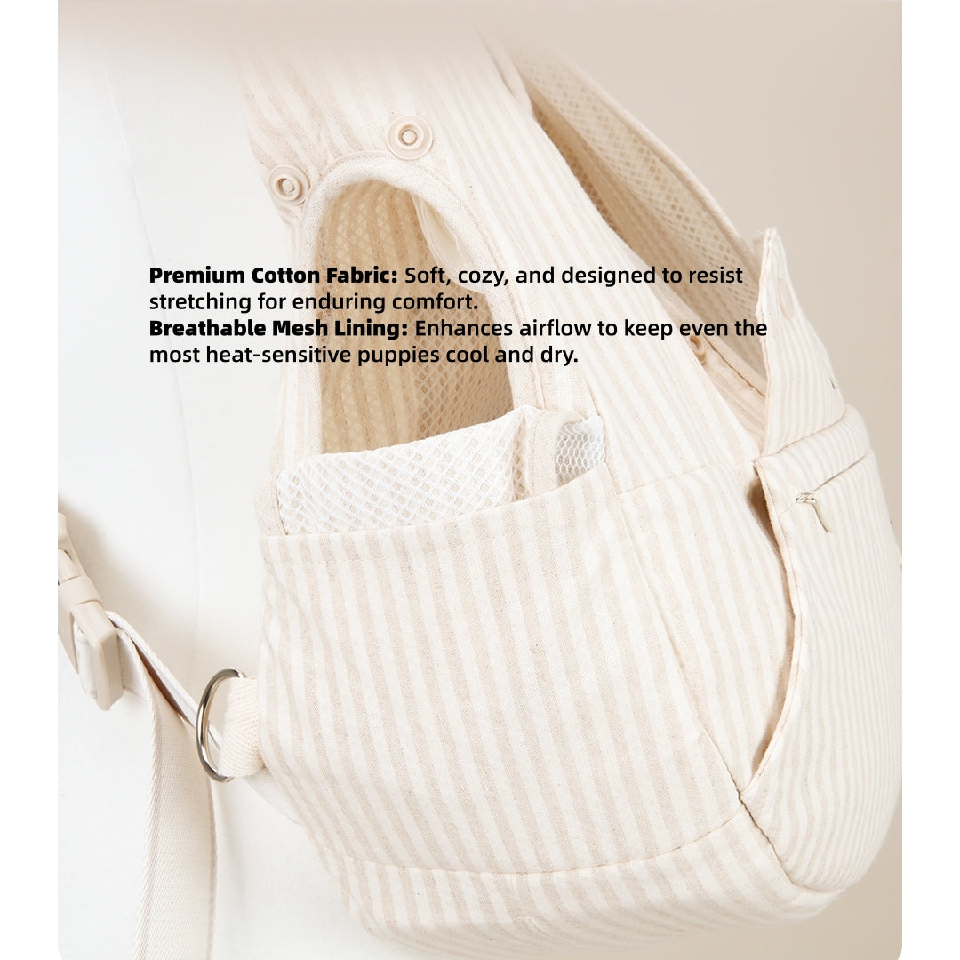 The carrier features an adjustable, quick-release buckle for easy use and a reinforced bottom panel for optimal support. The front-facing design keeps your pet close, offering reassurance through your proximity and calming heartbeat.